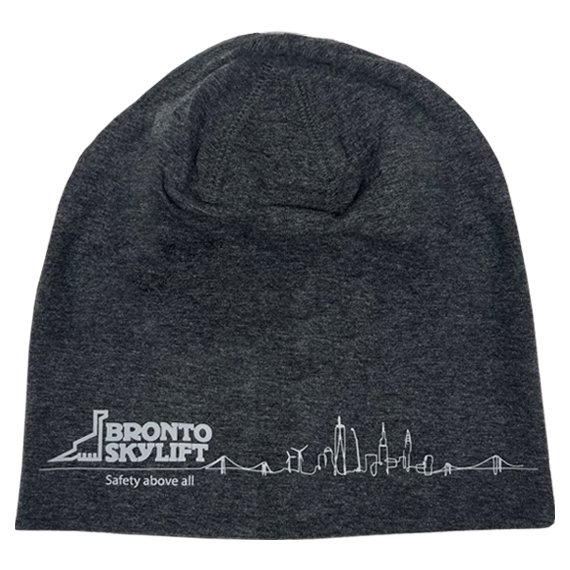 Double-layer single jersey beanie with flatlock seams. The beanie features the Bronto silhouette logo.