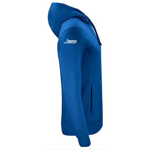 The hoodie has a full length zipper and two side and inside pockets. The hood has a drawstring and a mesh lining in contrasting colour. Ribbing on sleeves and hem. Size XS-4XL. Material 80% cotton, 20% polyester.